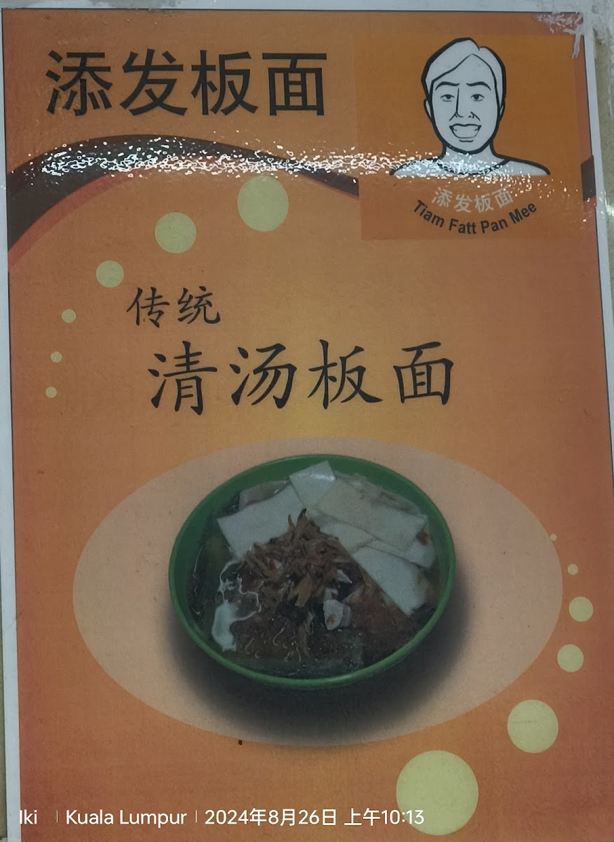 The menu at Restoran Chong Tiam Fatt | 添发板面 | 伊面 offers a delightful variety of traditional noodle dishes that showcase the essence of Malaysian comfort food. The highlight of the menu is undoubtedly the Pan Mee Soup of the Day, a rich and flavorful dish that changes daily, ensuring a fresh and exciting experience with each visit. Another standout is the Dried Pan Mee, which features perfectly cooked noodles paired with a savory sauce, offering a satisfying combination of textures and flavors. The 板面 (Ban Mian) is another must-try, known for its chewy noodles and a deeply savory broth that perfectly balances the spices and herbs. Each dish is crafted with care, using quality ingredients that elevate the simple yet comforting nature of the food. With its inviting atmosphere and consistent quality, Restoran Chong Tiam Fatt proves to be a reliable spot for those seeking a hearty meal in the heart of Kuala Lumpur.